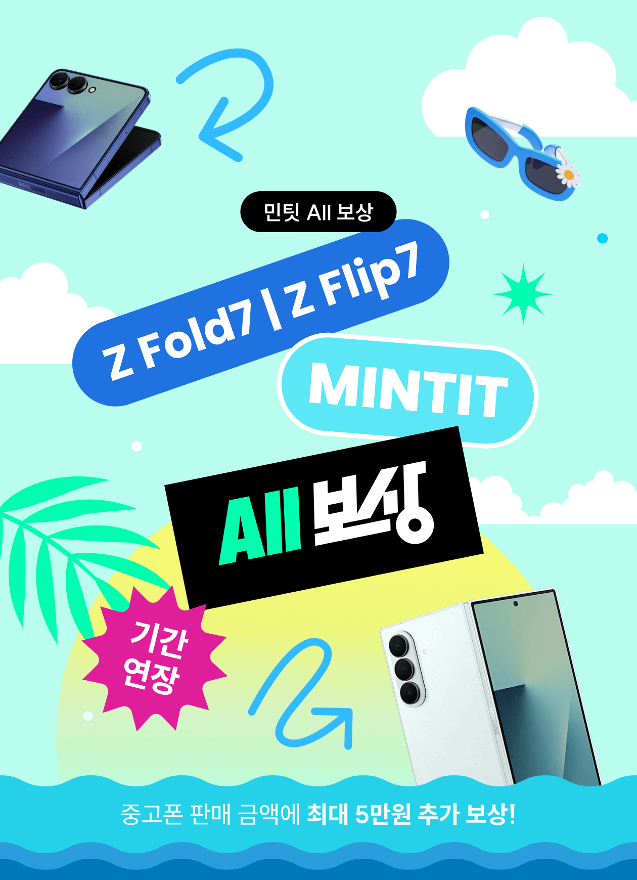 - All 보상 신청(PASS 인증)을 완료하고 판매 기간(25.7.22-8.24) 내 중고폰을 판매하면 중고폰 판매금액에 5, 3만 원의 추가 보상금을 더 드리는 민팃 이벤트입니다.