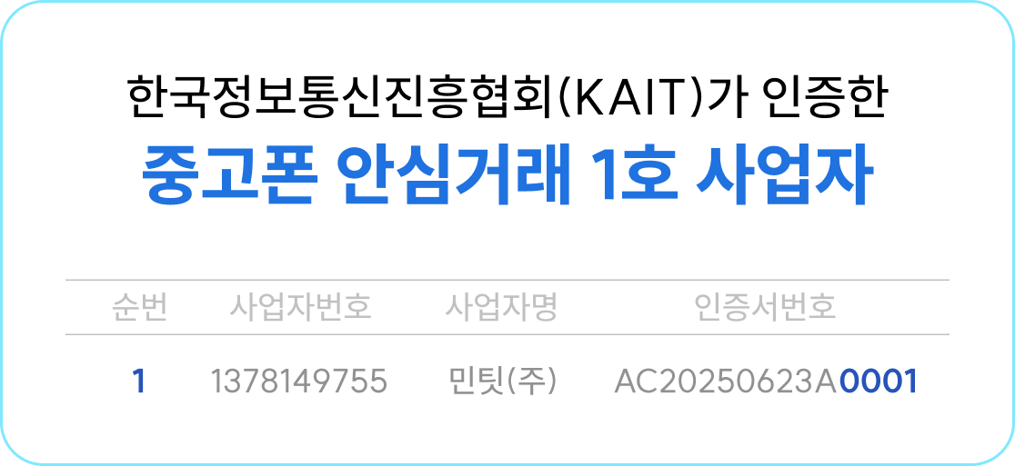 - 민팃 All 보상 이벤트는 반드시 민팃 ATM으로 중고폰 판매가 완료된 건만 혜택이 제공되며, 대리점 직원을 통한 판매의 경우 이벤트 대상에서 제외됩니다.