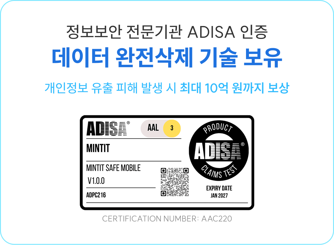 | 민팃 광고 메세지(알림톡, 문자, 앱 푸시 등)발신 | 통신사, 이름, 생년월일, 휴대폰 번호 | 이벤트 종료일로부터 6개월 동안 보관 후 파기 |